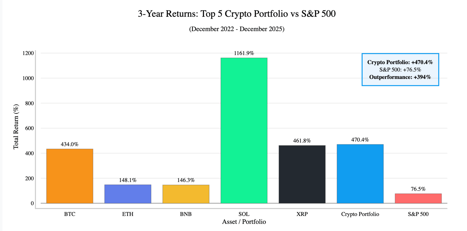 • “Compare long-term returns of major crypto sectors versus traditional asset classes.”