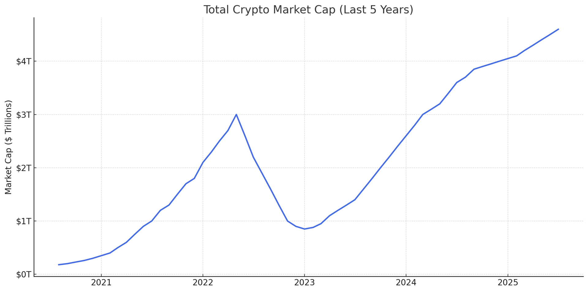 This week, the total value of crypto assets crossed $4 trillion, a historic first. But the number itself isn’t the headline. The real story is that this represents a genuine breakout past previous highs, driven by a fundamental shift in the market’s DNA.