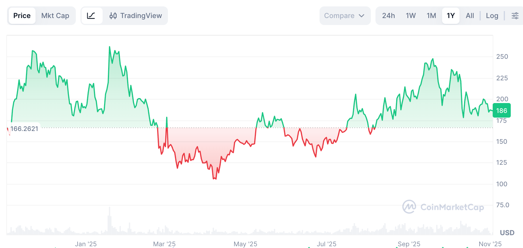 | Solana (SOL) | ≈ $186.5 | ↓ 7.0 % |